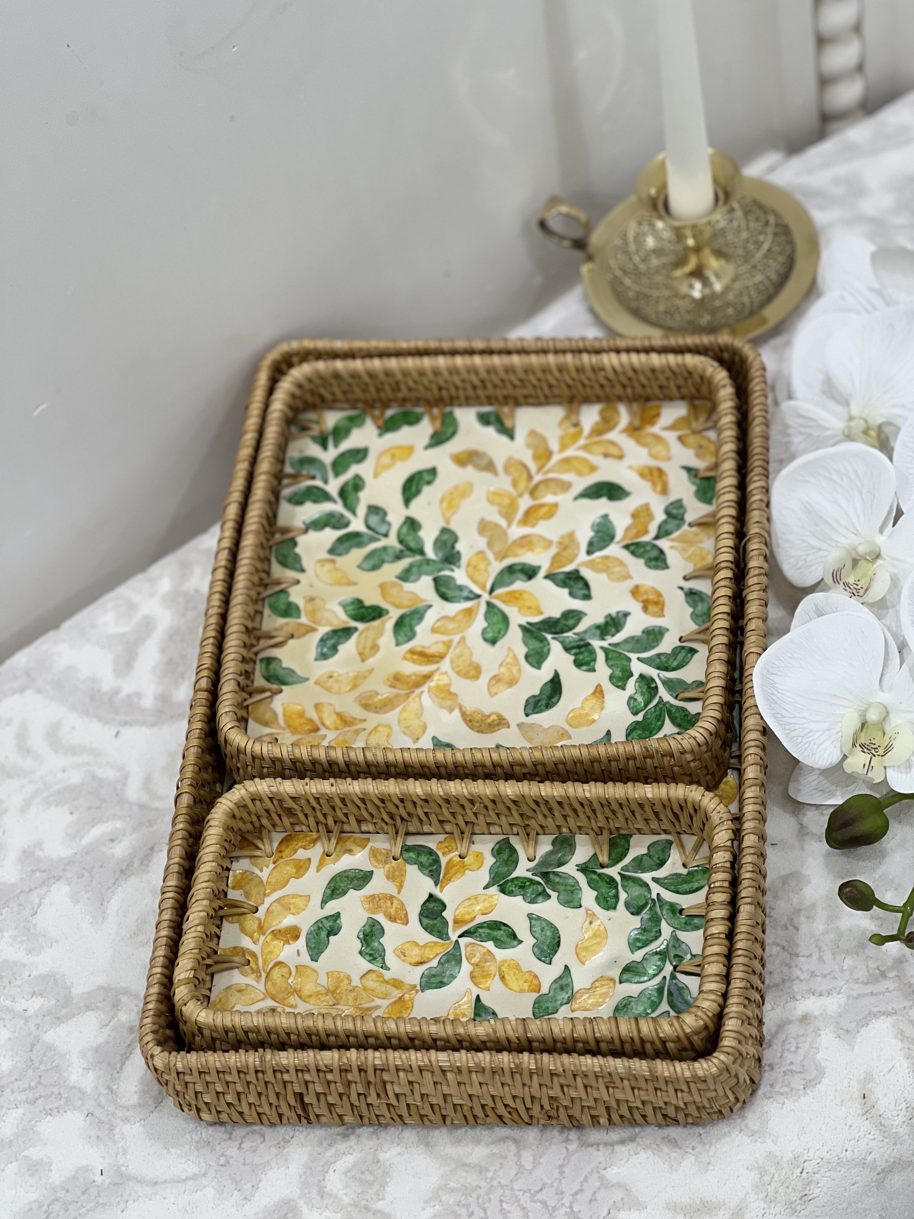سینی های راتان کف صدف ضد |آب و قابل شستشو موجود در رنگها و طرح های متنوع بسیار کاربردی و ترند با بهترین قیمت 1404 وارداتی ساخت چین فروش بصورت ست