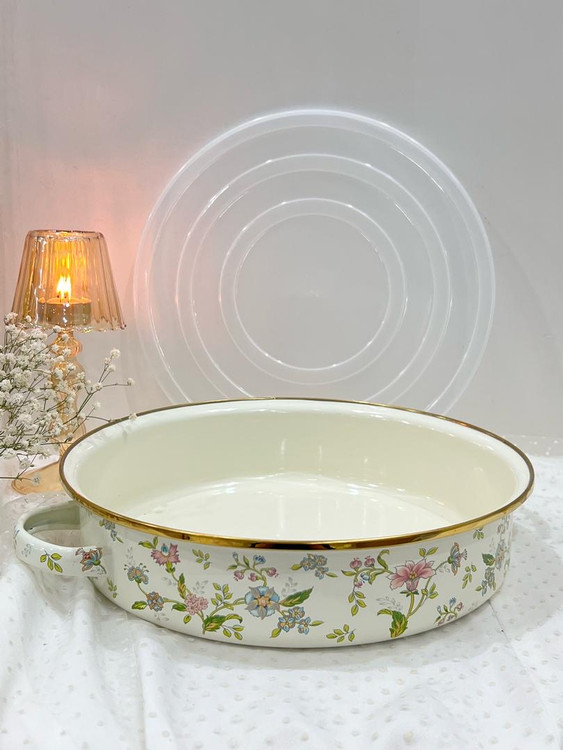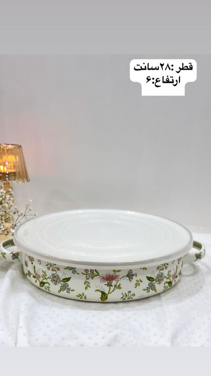تابه دو دسته لعابی طرح گل بهار با کیقیت بالا مخصوص پخت و پز و شعله مستقیم بسیار با کیفیت با پایینترین قیمت در تیر ماه 1404