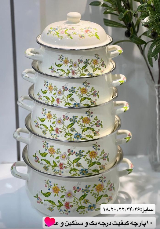 ست ۱۰ پارچه قابلمه لعابی طرح گل بهار با کیفیت بالا مخصوص پخت و پز و شعله مستقیم بسیار با کیفیت با پایینترین قیمت در بهمن ماه 1404