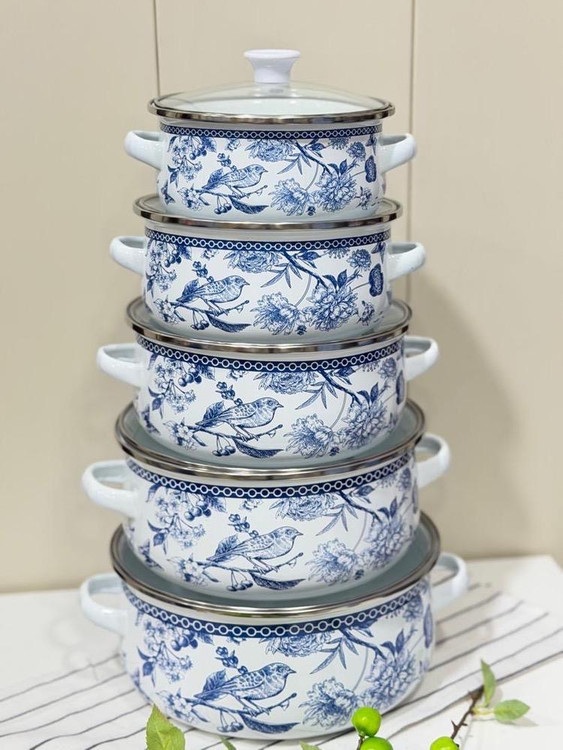 ست ۱۰ پارچه قابلمه لعابی طرح قلم آبی با کیفیت بالا مخصوص پخت و پز و شعله مستقیم بسیار با کیفیت با پایینترین قیمت در بهمن ماه 1404